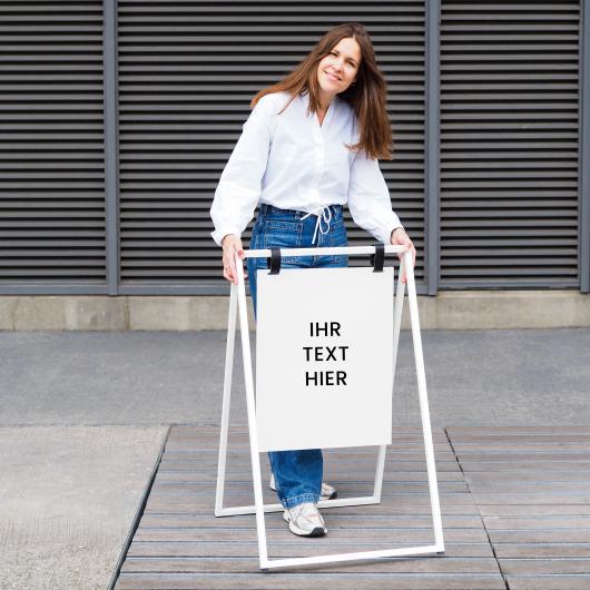 Dieses Schild ist ein echter Blickfang. Bringen Sie Ihr Logo oder Ihre Nachricht auf dem Schild an, um Ihr Unternehmen perfekt zu repräsentieren. Dieses hochwertige Stahlschild für den Bürgersteig ist sehr windbeständig, sobald es vollständig aufgeklappt ist.
